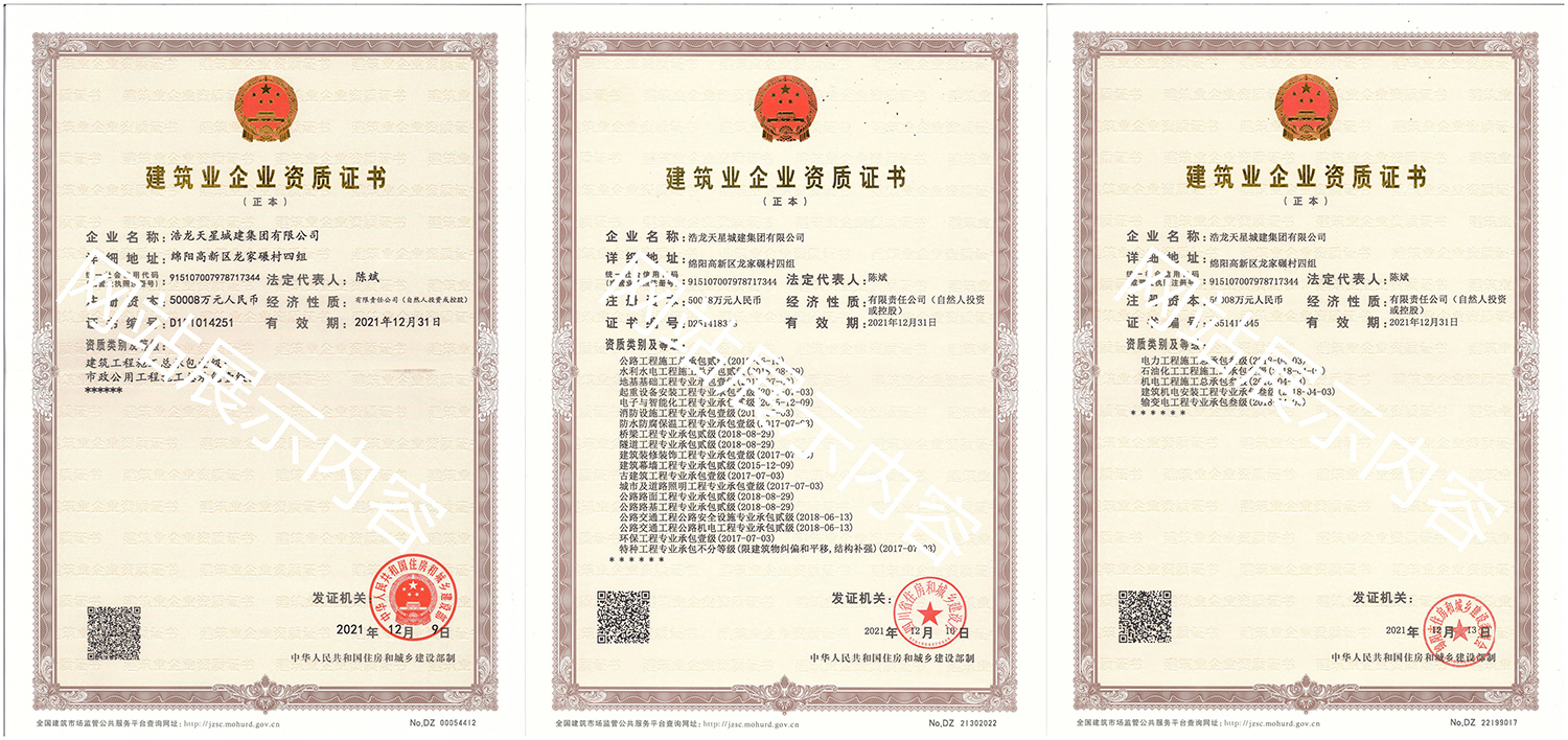 浩龍?zhí)煨浅墙瘓F(tuán)有限公司,2007年成立于“李白故鄉(xiāng)、中國科技城”—四川省綿陽市,企業(yè)注冊資本金5.0008億元。公司共有27項(xiàng)建筑業(yè)企業(yè)資質(zhì),其中國家一級資質(zhì)11項(xiàng),二級資質(zhì)10項(xiàng),三級資質(zhì)5項(xiàng),特種資質(zhì)不分等級1項(xiàng),類別涵蓋建筑、市政、水利、機(jī)電、隧道、起重設(shè)備安裝等基礎(chǔ)及未來發(fā)展重點(diǎn)專業(yè)。公司下設(shè)三個辦事處,業(yè)務(wù)范圍輻射全國,在建項(xiàng)目三十余個,累計完成產(chǎn)值超11億元。公司是綿陽市建筑施工企業(yè)協(xié)會副會長單位、綿陽遂寧商會會長級單位、綿陽首批建筑業(yè)綠卡企業(yè),在綿陽本地企業(yè)中綜合實(shí)力名列前茅。